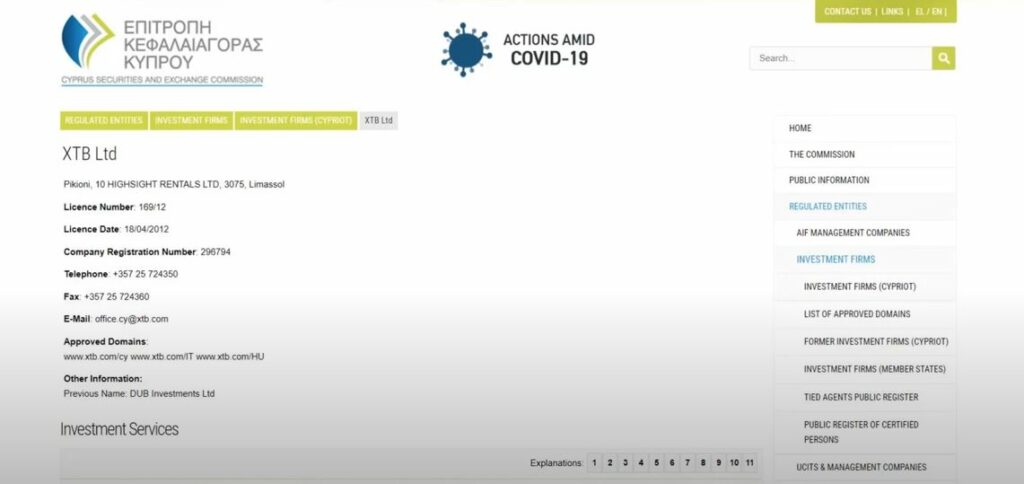 - CySEC (Ủy ban chứng khoán và giao dịch Síp): Đây là giấy phép cho XTB tại thị trường châu Âu, giúp công ty có thể hoạt động và cung cấp dịch vụ giao dịch trên toàn Liên minh Châu Âu.